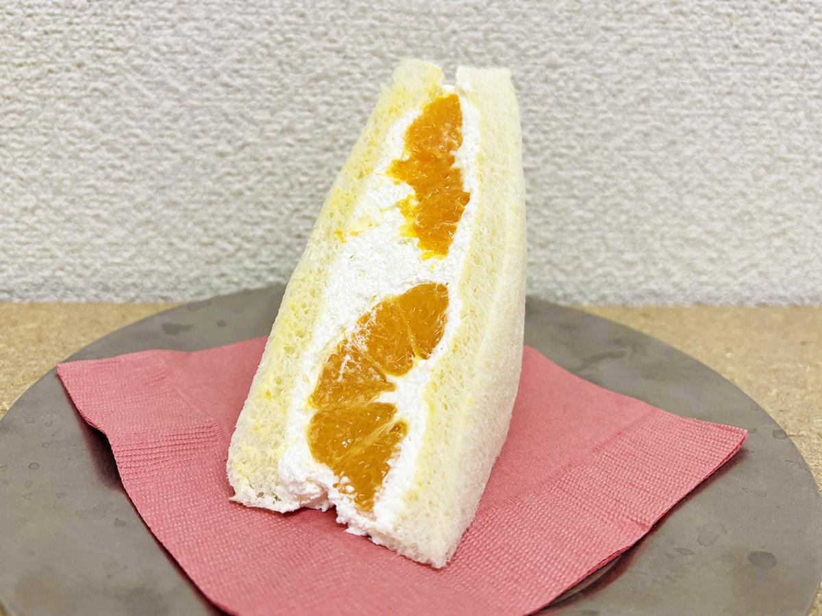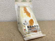 「有田みかん」が敷き詰められた「セブン‐イレブン」で期間限定販売中の「有田みかんサンド」