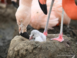 2種のフラミンゴのひなが3月28日と29日、「アドベンチャーワールド」(白浜町堅田)で誕生した。