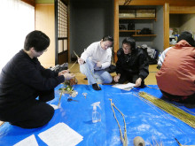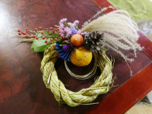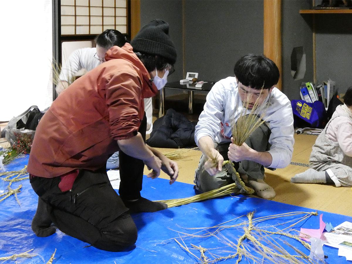 串柿とは「干し柿」の一種で、鏡餅、ダイダイとともに正月の祝い物として使われる。一本の串に刺される干し柿は、両端に結ばれた縄の外側に2個ずつ、内側に6個の計10個。「新玉(あらたま)の年の初めに、夫婦ニコニコ(2個)仲睦(むつ)ましく(6個)」という思いが込められているという。