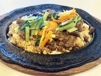 きいちゃん食堂で提供する「ジビエキーマカレー&ジビエコロッケ サラダ付き」