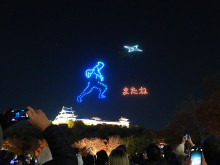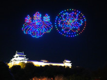 当日は「歴史を彩る光のプリズム」と題し、19時から約15分間のショーを展開。ドローンはナレーションと音楽に合わせて編隊を組み替えながら上空を旋回し、豊臣秀吉や鉄砲隊など和歌山城の歴史に関するモチーフ、2026年に放送60周年を迎えるウルトラマンシリーズに登場する怪獣などを表現した。