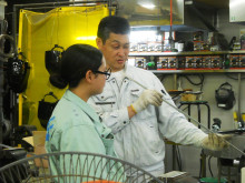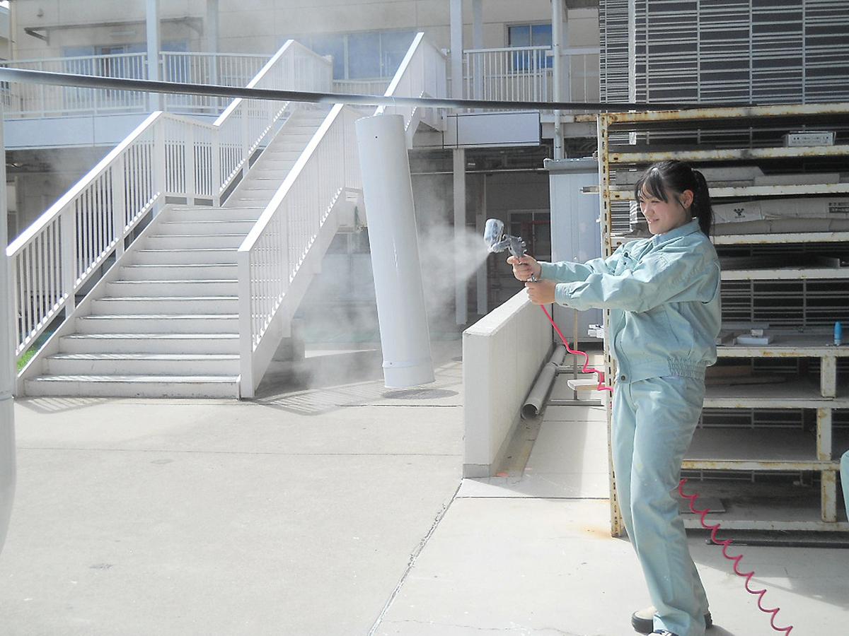 ロケットのパーツを塗装する和歌山工業高校産業デザイン科の生徒