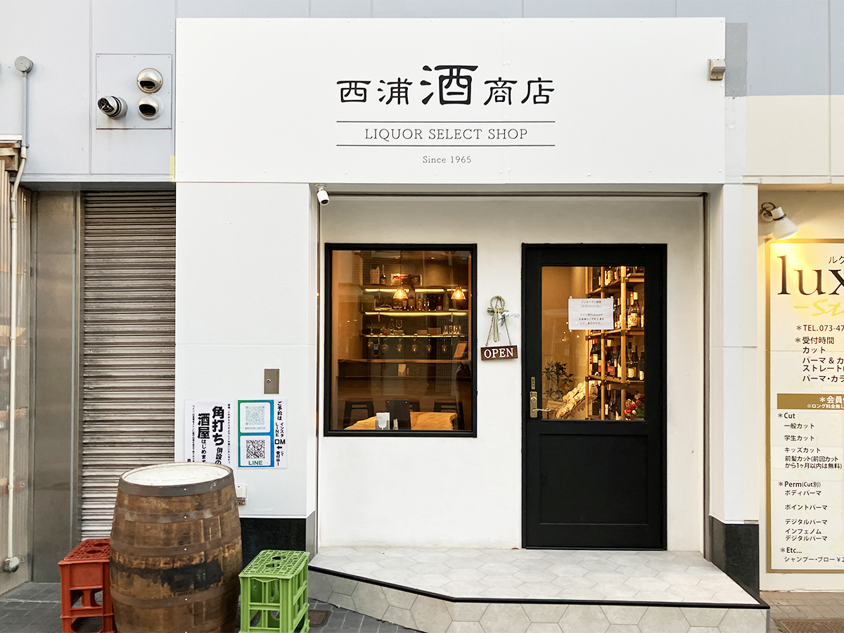 JR和歌山駅東口近くの角打ちでワインが楽しめる「西浦酒商店」外観