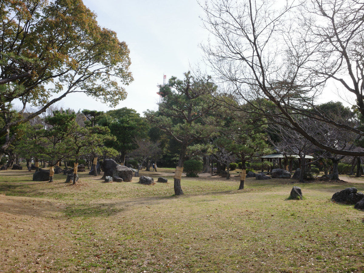 和歌山城公園のこもが巻かれたマツ