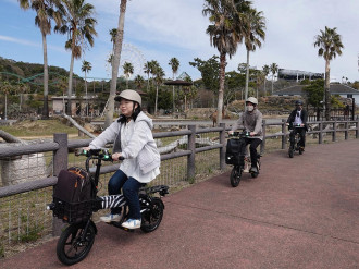 和歌山の電動バイクメーカー「glafit(グラフィット)」製のバイクを使った体験型アトラクション「サファリEバイククルーズ」が3月21日、アドベンチャーワールド(白浜町堅田)で始まった。