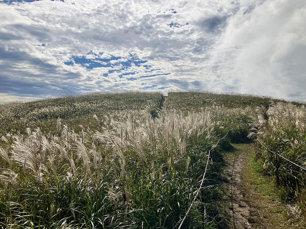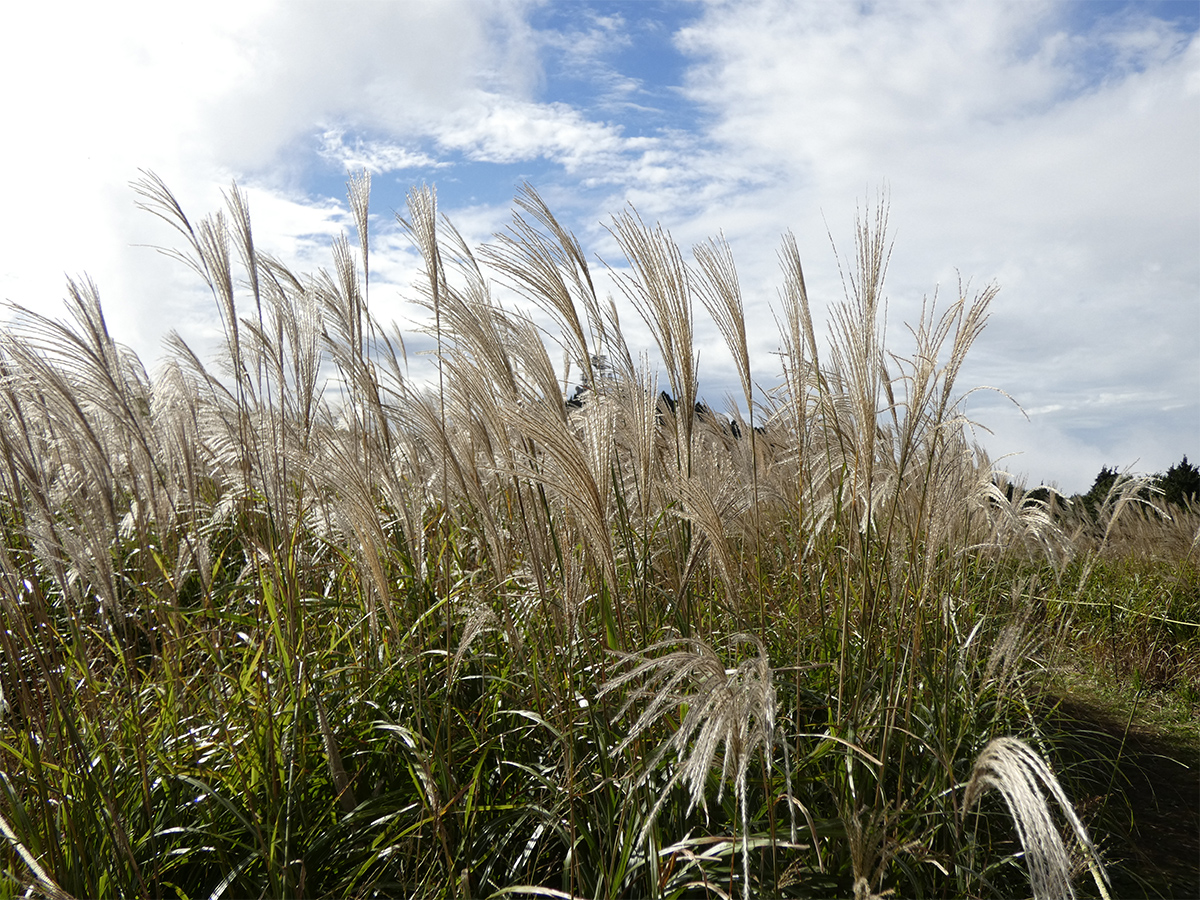 生石(おいし)高原で現在、秋の訪れを告げるススキが見頃を迎えている。