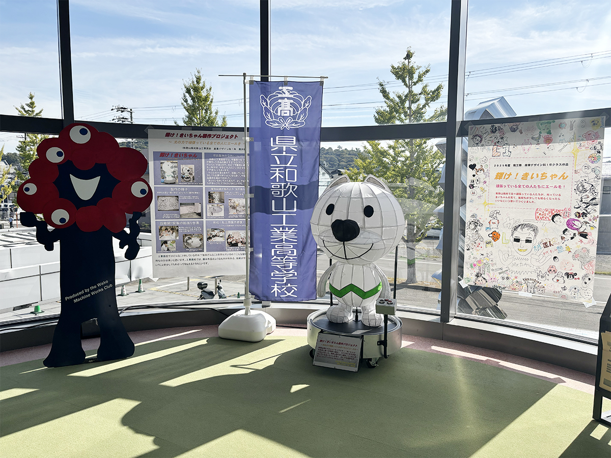 和歌山県立和歌山工業高校(和歌山市西浜)産業デザイン科1年の生徒40人が作った「輝け!きいちゃん」の展示が10月29日、県立図書館(西高松1)で始まった。