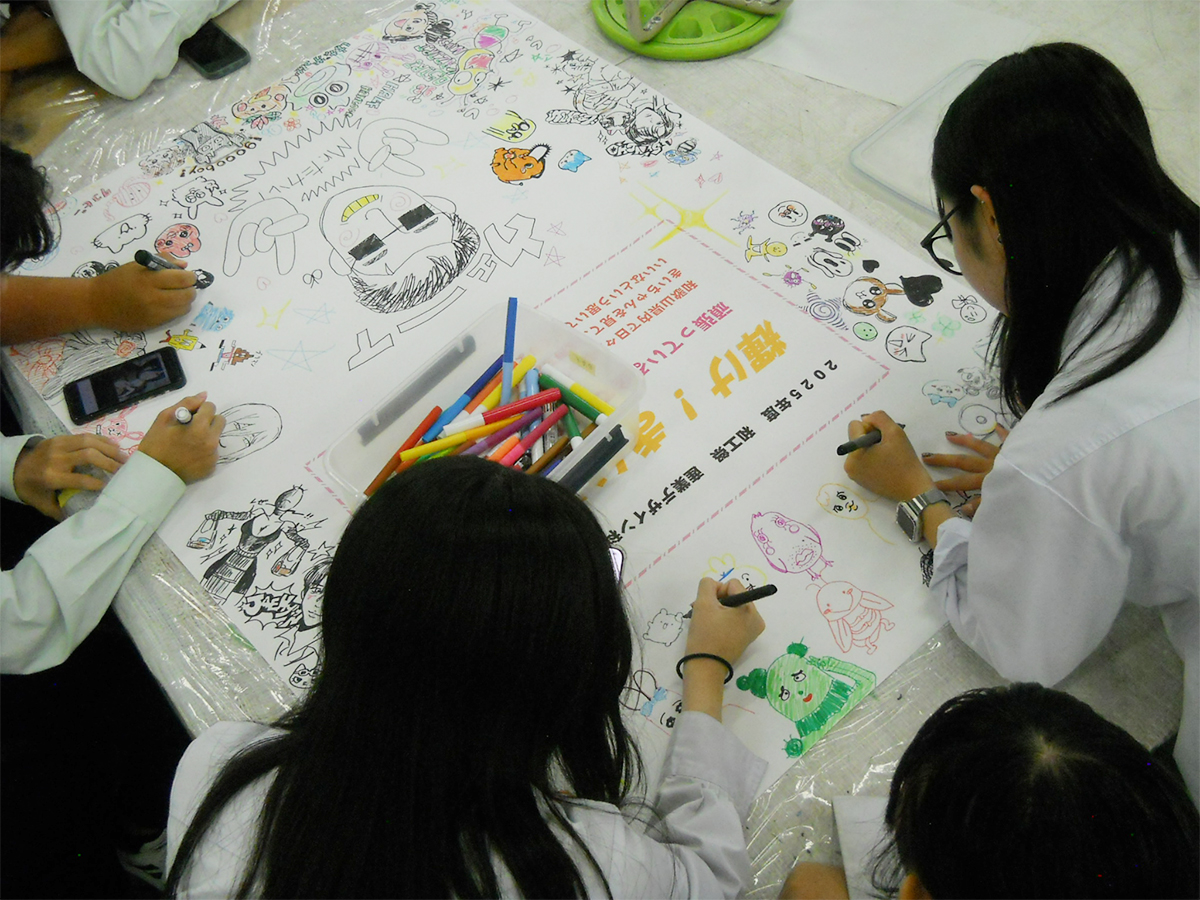 「輝け!きいちゃん」を紹介するポスターを製作する生徒たち