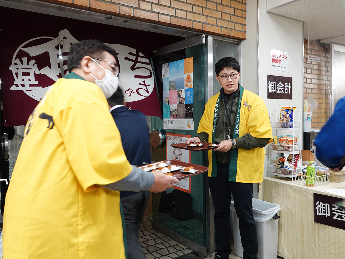 和歌山県庁内「きいちゃん食堂」で試食を配布する県職員