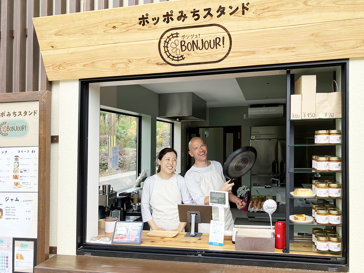 フランスから移住した光石有希子さん・ロリュ・ポールさんがオープンした「ポッポみちスタンドボンジュ」
