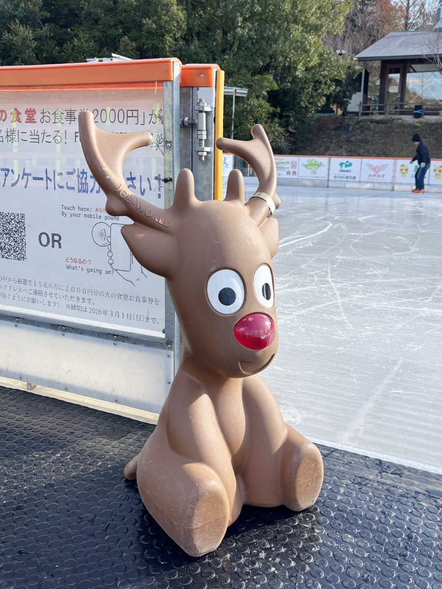 和歌山市の道の駅「四季の郷公園」の屋外スケートリンク「アオゾラアイスパーク」で貸し出すトナカイ型のスケート補助具