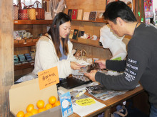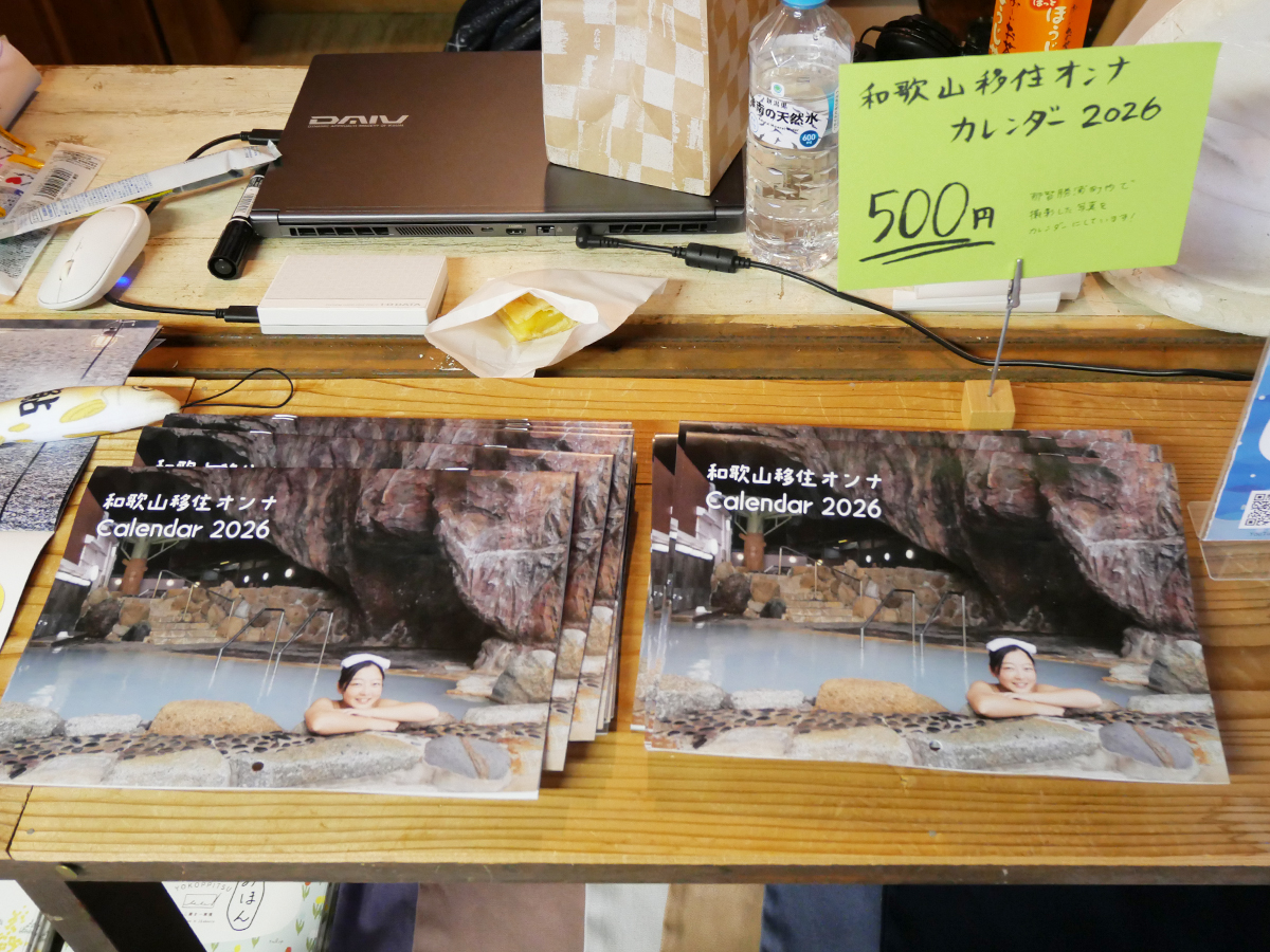 「和歌山移住オンナ」として活動する動画配信者の宮本遥菜さんが12月20日・21日、交流拠点「太田の郷」(那智勝浦町太田)で自主制作カレンダーの対面販売を行った。