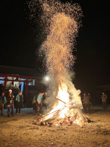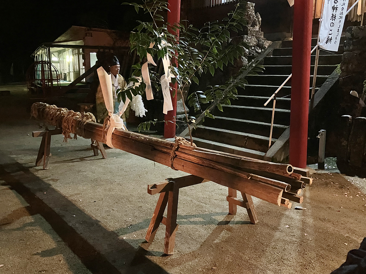 火祭り行事「たい松押し」が12月31日、下花園神社(かつらぎ町花園梁瀬)で行われた。