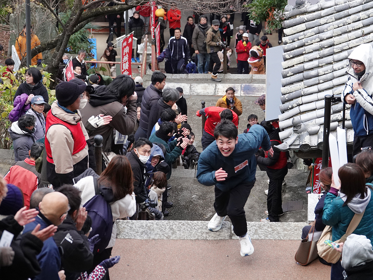紀三井寺で開催された「福開き速駈詣り」で観衆の声援を受けて頂上を目指して走る参加者
