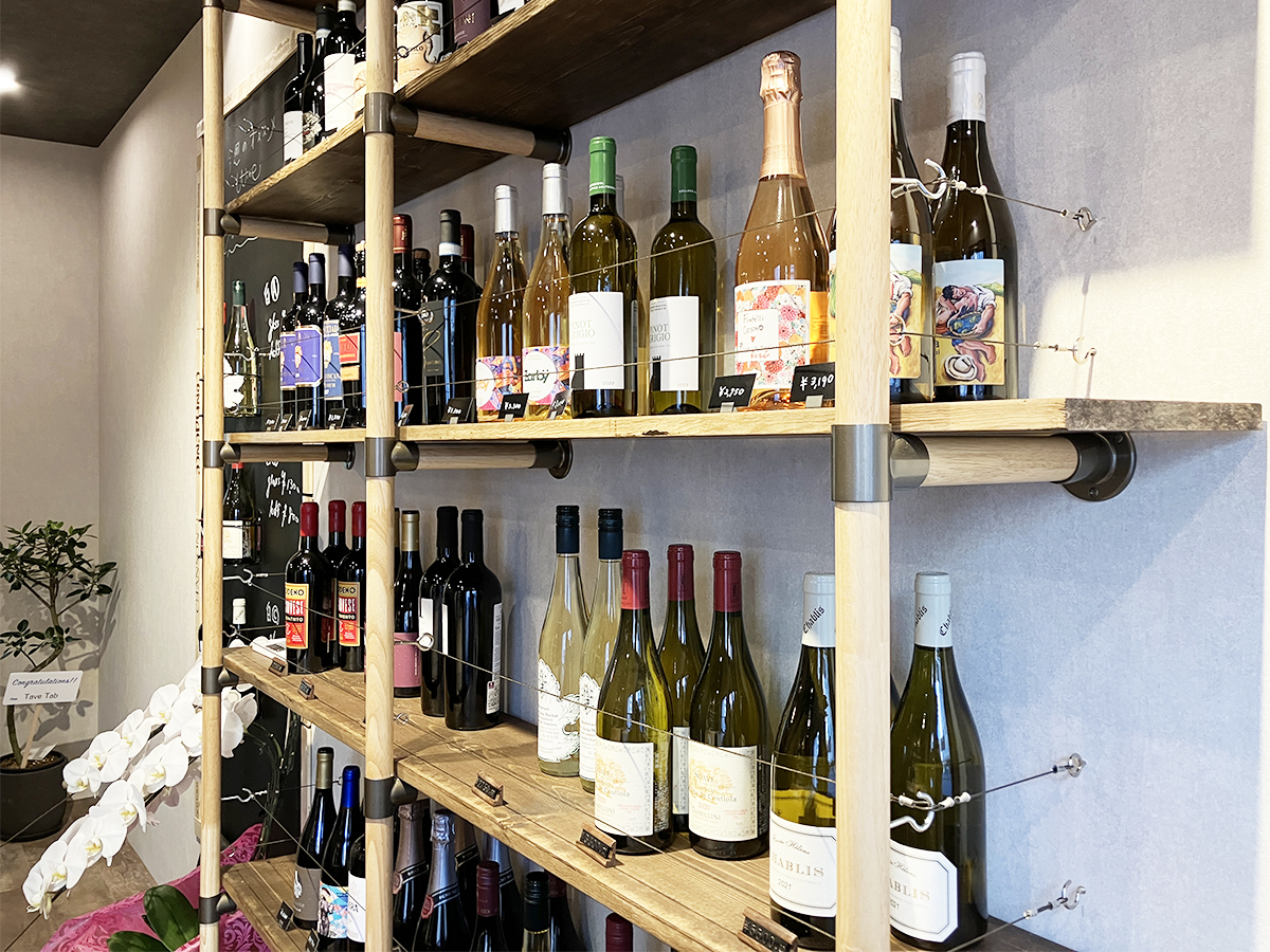 JR和歌山駅東口近くの「西浦酒商店」の棚にズラリと並ぶワイン