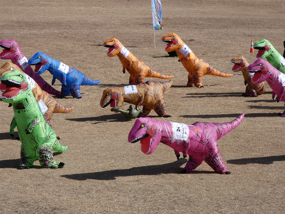 第1回「本州最南端ティラノサウルスレース」が1月17日、「潮岬望楼の芝」(串本町潮岬)で行われた。