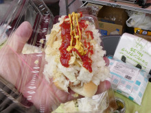 「やりすぎまぐろフェス」フィナーレイベントでやりすぎ企画にちなんだ盛りすぎホットドッグ