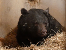 和歌山城公園動物園で冬眠明けに社長座りで日光に当たるベニー(2022年3月25日撮影)