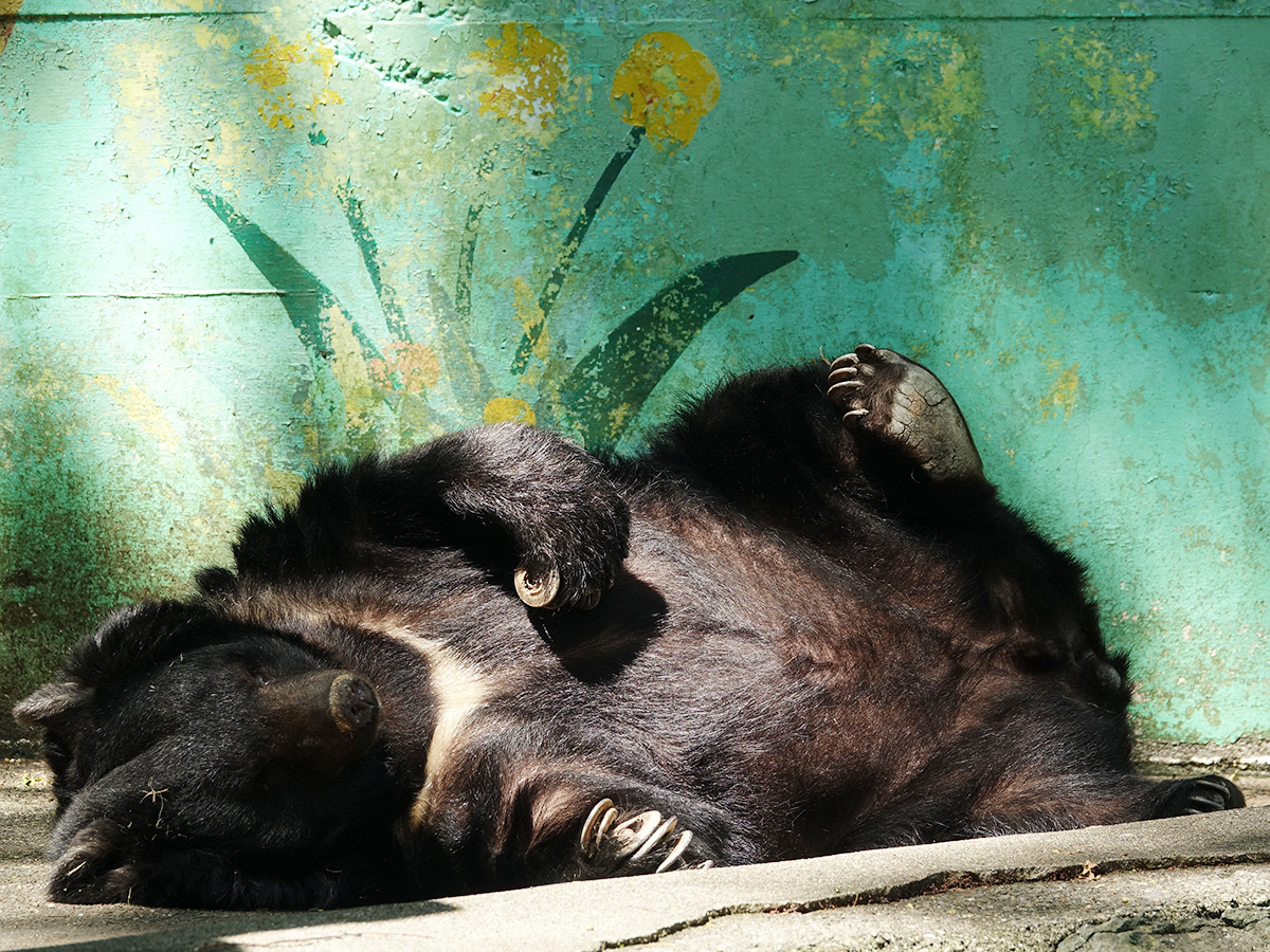 和歌山城公園動物園で暑い日に腹を見せて眠るベニー(2020年6月8日撮影)