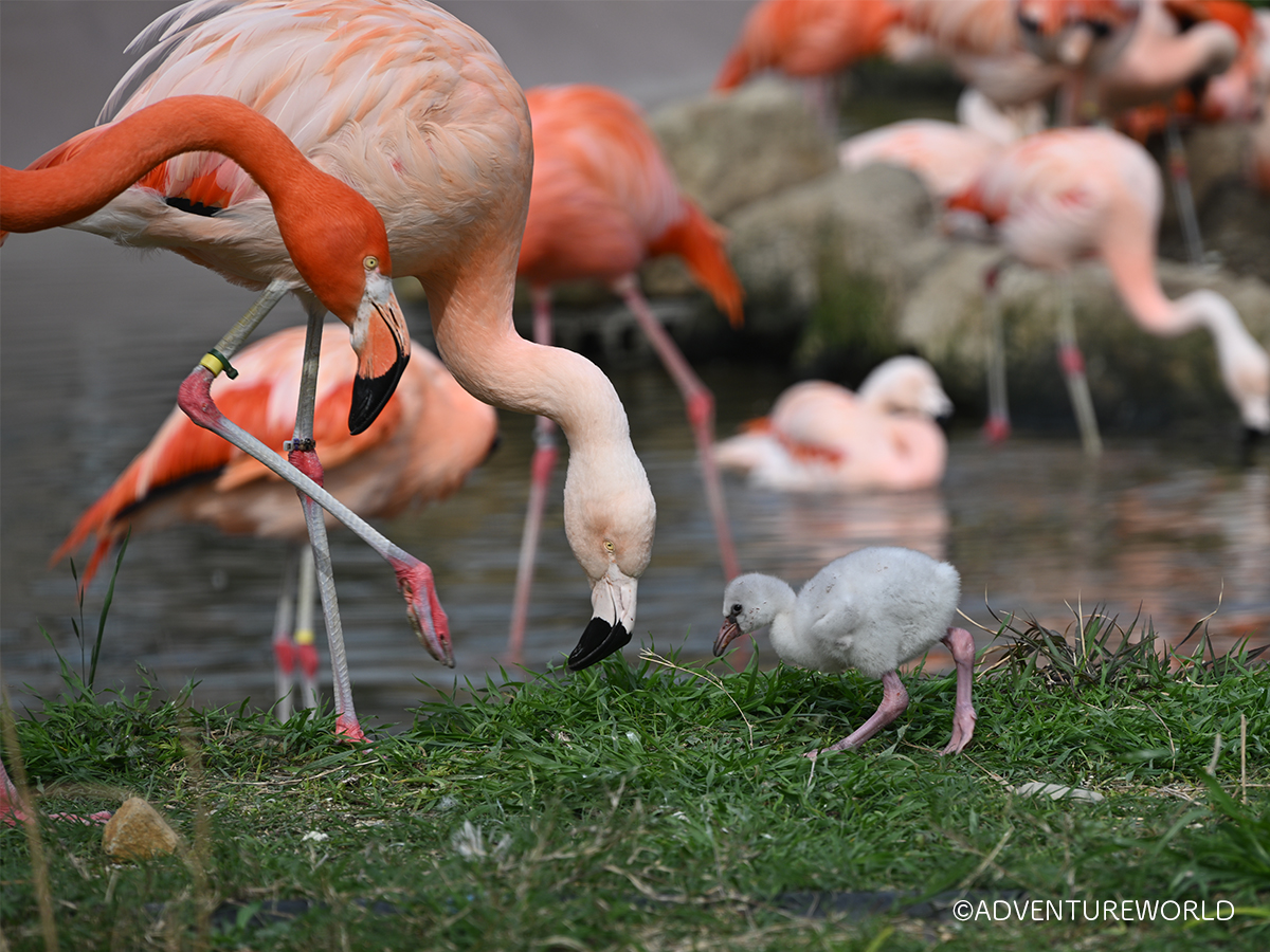 2種のフラミンゴのひなが3月28日と29日、「アドベンチャーワールド」(白浜町堅田)で誕生した。