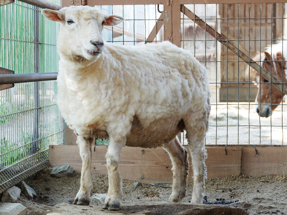 和歌山城公園動物園の毛刈りを終えて夏支度が済んだヒツジの「たまこ」