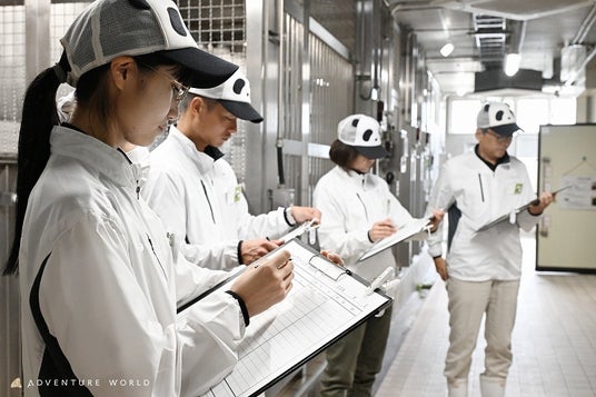 飼育スタッフの制服を着用し、食事の準備や行動観察及び日報の記入、運動場の安全確認など実際の飼育業務を模したプログラムを体験いただけます。
