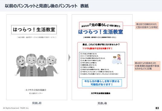 - 総合事業を見直す必要性を言語化でき、これまで説明できていなかった関係者に対して資料を用いて説明し、理解を得ることができた