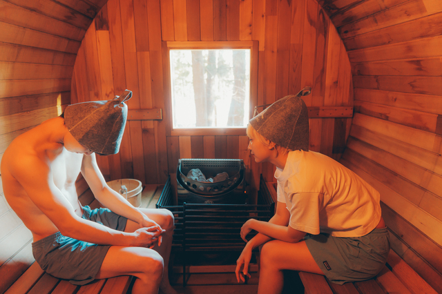 水上バイクで高まった熱気を、木の香り漂うバレルサウナで落ち着かせ、