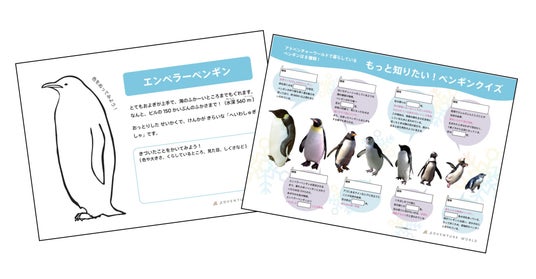 左)ペンギンのぬりえ図鑑 右)ペンギン豆知識クイズシート
