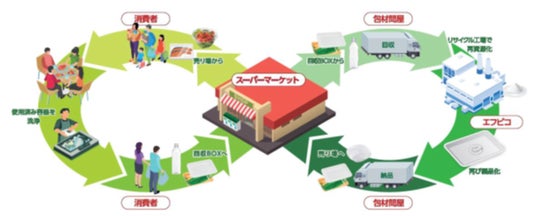 エフピコとオークワは、「お店が地域のエコリーダーとなること」を目指し、オークワの店頭で回収した使用済み食品トレーを、エフピコが新たな食品トレーへと生まれ変わらせ、再び売り場で使用する「ストアtoストア」の水平リサイクルの推進に取り組んでおります。