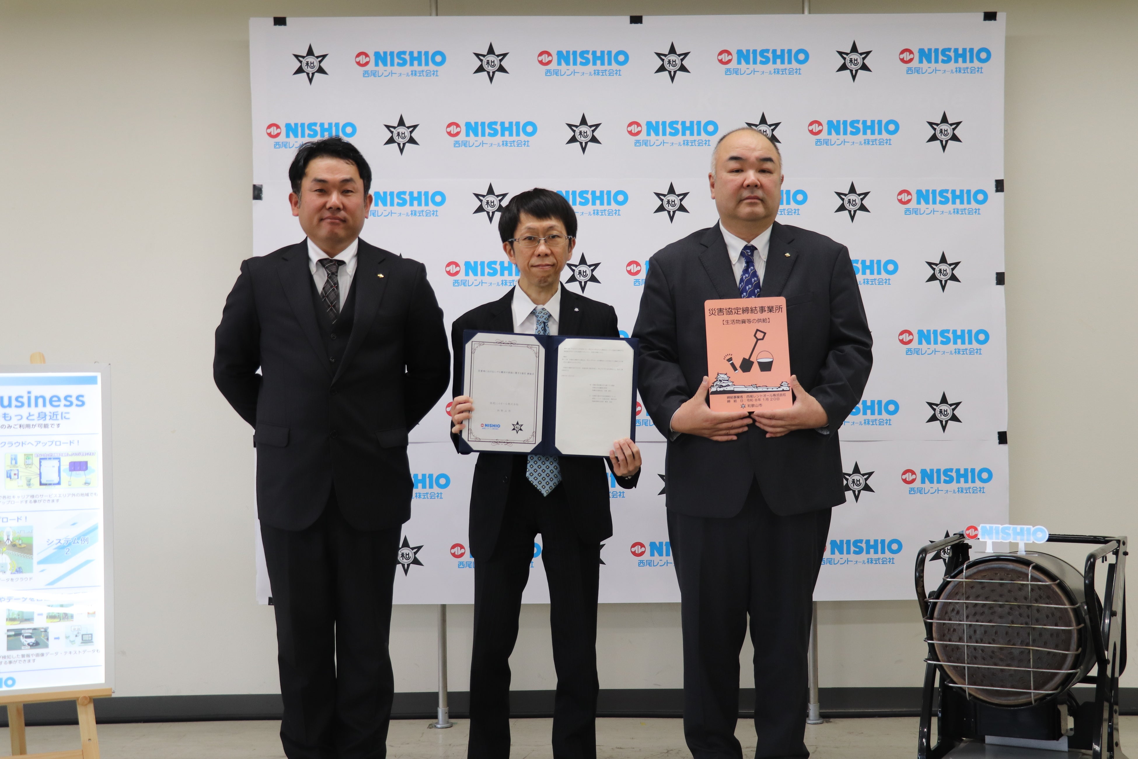 西尾レントオールと和歌山市は「災害時におけるレンタル機材の供給に関する協定」を締結しました