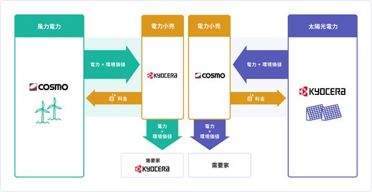 京セラとコスモエネルギーグループ、風力発電・太陽光発電による再エネの相互調達を4月より開始
