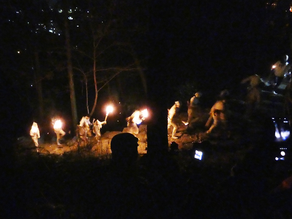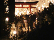 新宮・神倉神社の「御燈祭り」で麓から御神火を持っていく様子